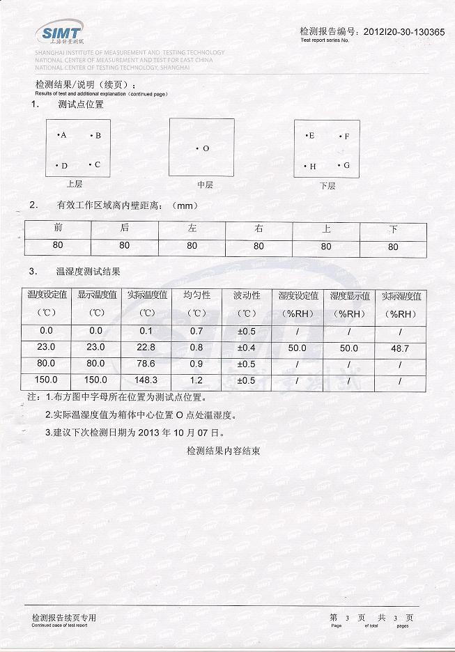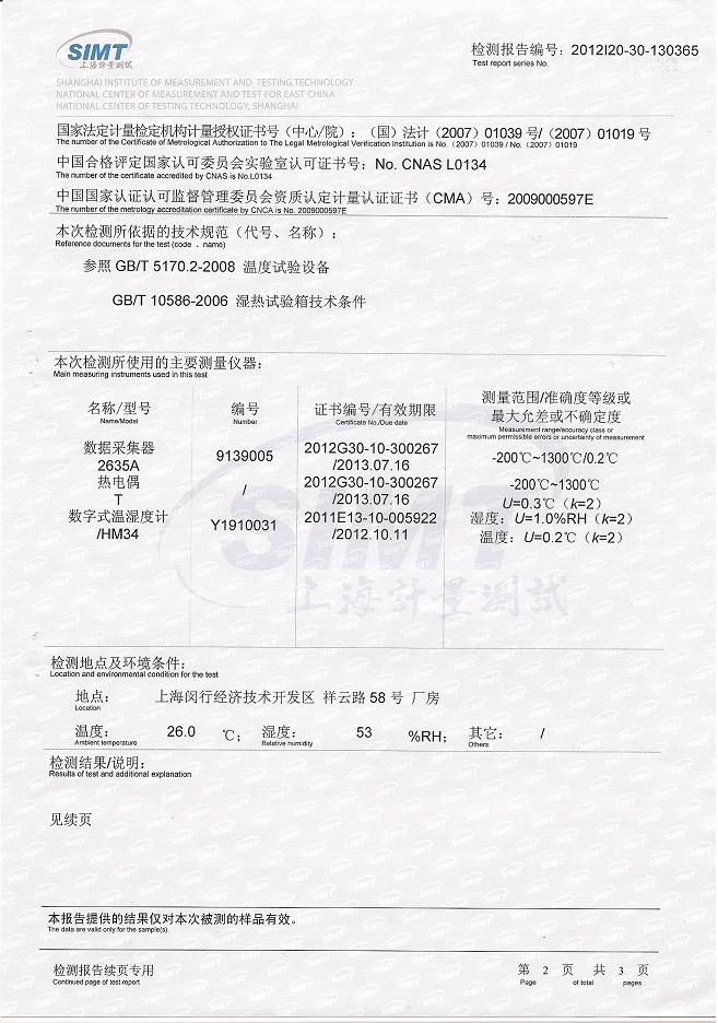 >>恒溫恒濕試驗箱檢測報告-上海計量院-天威保變
