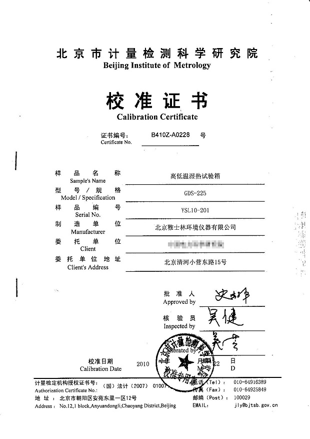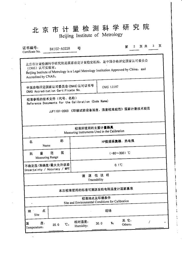>>高低溫濕熱試驗箱校準證書模板下載—北京計量院