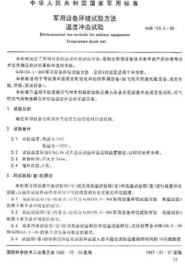 ·溫度沖擊試驗相關標準